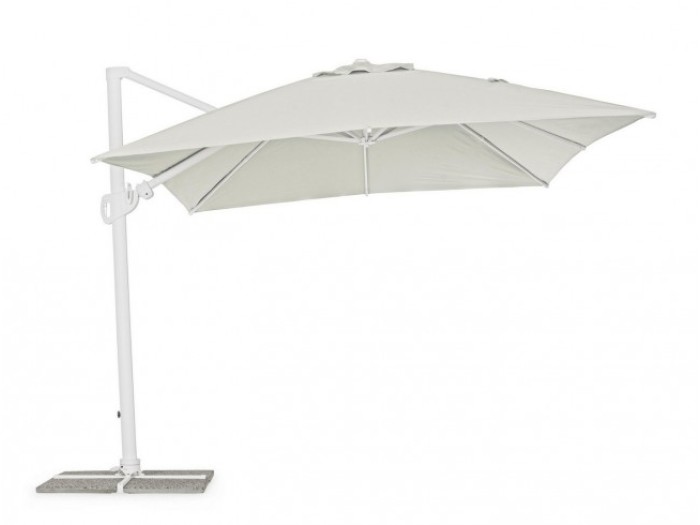 Καθώς ο ήλιος κινείται κατά την διάρκεια της ημέρας, η ομπρέλα μπορεί να περιστραφεί χειροκίνητα κατά 360°, προστατεύοντάς σας από την υπεριώδη ακτινοβολία. Επιπλέον, ο ειδικός μηχανισμός με πλευρική μανιβέλα σας επιτρέπει να ρυθμίσετε την γωνία κλίσης του καλύμματος και να αυξομειώσετε το ύψος του.