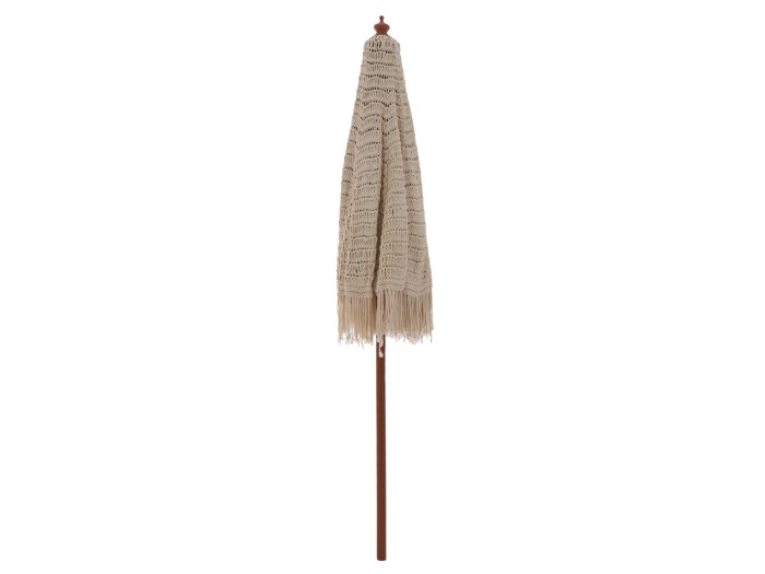 Ομπρέλα Φ2,30μ. με ξύλινο σκελετό, 8 ακτίνες και διπλή τροχαλία, με πλέξη ΜΑΚΡΑΜΕ, σε μπεζ απόχρωση.