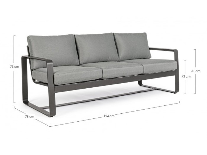 Τριθέσιος καναπές εξωτερικού χώρου από αλουμίνιο με ηλεκτροστατική βαφή ανθρακί χρώματος.