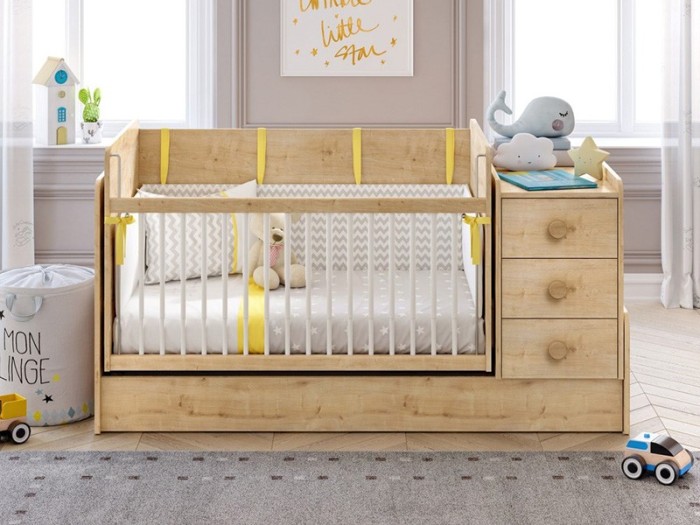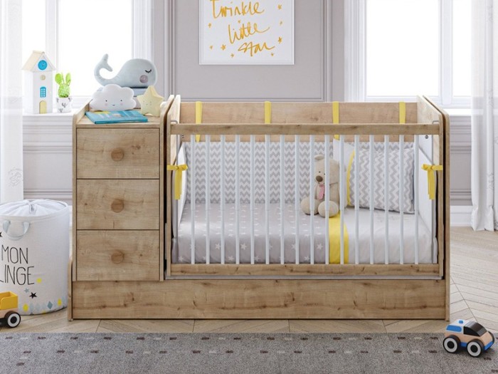 Μια υπέροχη βρεφiκή κούνια για το μωρό σας η κούνια είναι αναπτυσσόμενη έτσι μπορείτε να την χαρείτε πολλά χρόνια, η αλλαξιέρα στην κούνια μπορεί να τοποθετηθεί και από τις 2 πλευρές της κούνιας, δεξιά και αριστερά, τα κάγκελα έχουν μηχανισμό να κατεβαίνουν και να ανεβαίνουν, όταν αναπτυχθεί ένα μέρος της γίνεται γραφειάκι για να μπορεί να ζωγραφίζει το παιδί μεγαλώνοντας, η αλλαξιέρα είναι σε 2 κομμάτια για να μπορεί να γίνει αργότερα, κομοδίνο και βιβλιοθήκη μαζί.