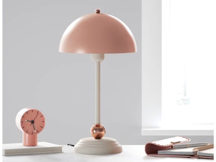 Προσφέρει μια γαλήνια ατμόσφαιρα με τις κομψές και μοντέρνες γραμμές και τους ζεστούς και χαλαρωτικούς τόνους. Το φωτιστικό, το οποίο έχει αισθητική εμφάνιση συνδυάζοντας μεταλλικά υλικά σε αρμονία με το χρώμα, έχει ένα ημισφαιρικό μεταλλικό καπάκι χρωματισμένο με στατική βαφή πούδρας, επιτρέποντας στο φως να διανέμεται με τον καλύτερο τρόπο.