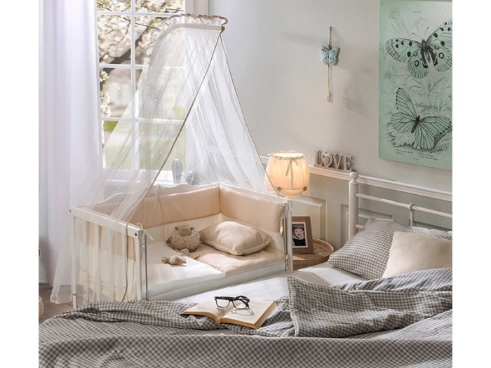 Βρεφικό λίκνο με δυνατότητα στήριξης πάνω στο κρεβάτι της μαμάς ή και αυτόνομο με προστατευτικό κάγκελα που ανεβαίνουν και κατεβαίνουν με μία κίνηση