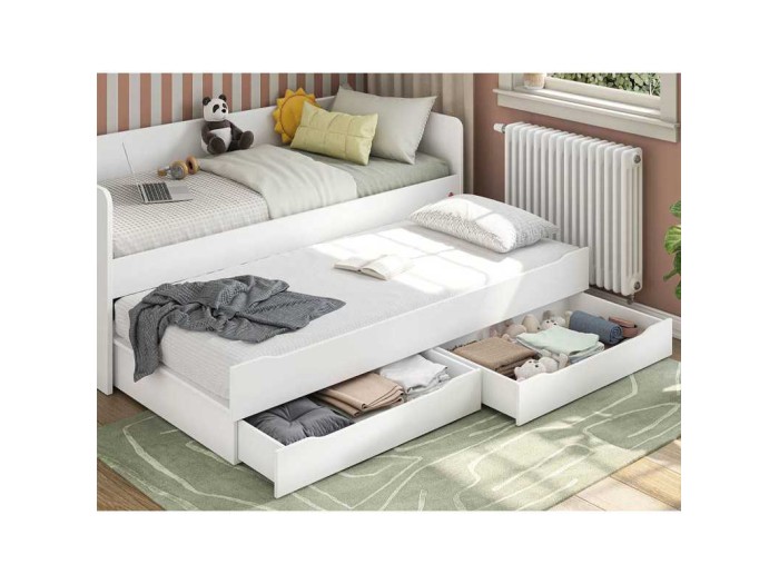 Ένα κρεβάτι με αποθηκευτικό χώρο, όπως αυτό της φωτογραφίας, είναι ιδανικό για να αποθηκεύετε παιχνίδια, ρούχα και βιβλία. Το συρόμενο κρεβάτι από κάτω είναι τέλειο για φιλοξενία φίλων.