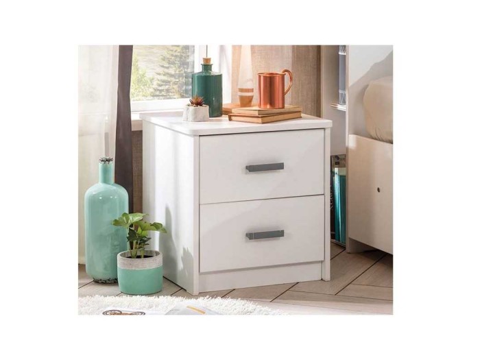 Το κομοδίνο της σειράς White διαθέτει δύο συρτάρια για χώρο αποθήκευσης. Σχεδιαστικά ακολουθεί την ίδια μοντέρνα αισθητική με έμφαση στις λεπτομέρειες και το design