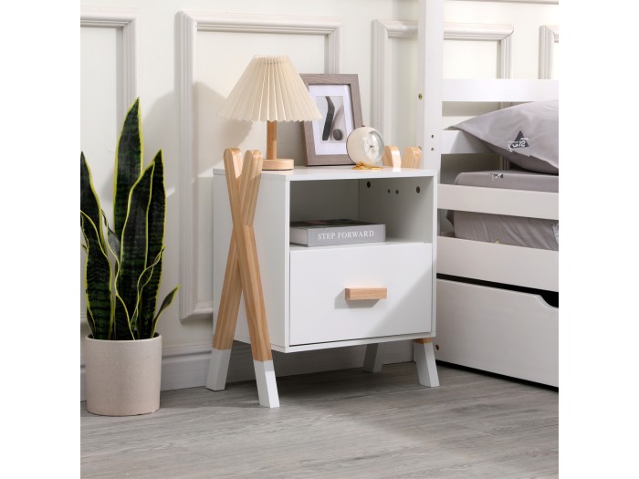 Σας παρουσιάζουμε το καινούργιο παιδικό (και όχι μόνο) κομοδίνο PASCHAL σε ΛΕΥΚΟ χρώμα. Είναι πολύ βολικό σε διαστάσεις και διαθέτει ένα συρταράκι και έναν ανοιχτό χώρο τοποθέτησης αντικειμένων. Στηρίζεται σε δύο ξύλινα χιαστί πόδια σε ΦΥΣΙΚΟ χρώμα ξύλου στις δύο πλευρές. Ένα όμορφο και χρήσιμο έπιπλο για κάθε χώρο. Είναι βαμμένο με αβλαβές βερνίκι με βάση το νερό και μη τοξικό, ιδανικό για παιδιά.