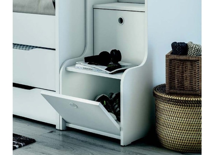 Η νέα σύνθεση με το κρεβάτι υπερυψωμένο, σας προσφέρει επιπλέον χώρο μέσα στο δωμάτιο και δεν απαιτεί άλλον χώρο εκτός τον χώρο που καταλαμβάνει το κρεβάτι μέσα στο δωμάτιο, ταυτόχρονα προσφέρει έναν χώρο γραφείο και μια ντουλάπα για να εκμεταλλευτείτε με τον καλύτερο τρόπο, κάθε γωνιά του δωματίου σας, τα σκαλοπάτια είναι επιπλέον αποθηκευτικοί χώροι.