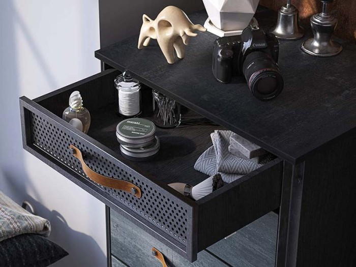 Το εφηβικό κομοδίνο της σειράς, DARK METAL σχεδιάστηκε ειδικά για να εξυπηρετεί τις ιδιαίτερες ανάγκες των δυναμικών εφήβων που δεν έχουν χρόνο για χάσιμο. Ο μοντέρνος και έξυπνος σχεδιασμός του περιλαμβάνει ένα μεταλλικό μαύρο συρτάρι καθώς και 3 ξύλινα ράφια με όψη τσιμέντου για ρούχα και αντικείμενα που χρησιμοποιεί σε καθημερινή βάση και που θέλει να είναι ορατά και άμεσα προσβάσιμα με μία και μόνο κίνηση.