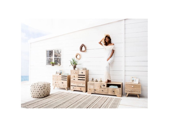 Ένα υπέροχο έπιπλο tv, με ανάγλυφα έθνικ σχέδια να διακοσμούν την επιφάνεια του ξύλου και να προσδίδουν μία ρομαντική ατμόσφαιρα στο χώρο.