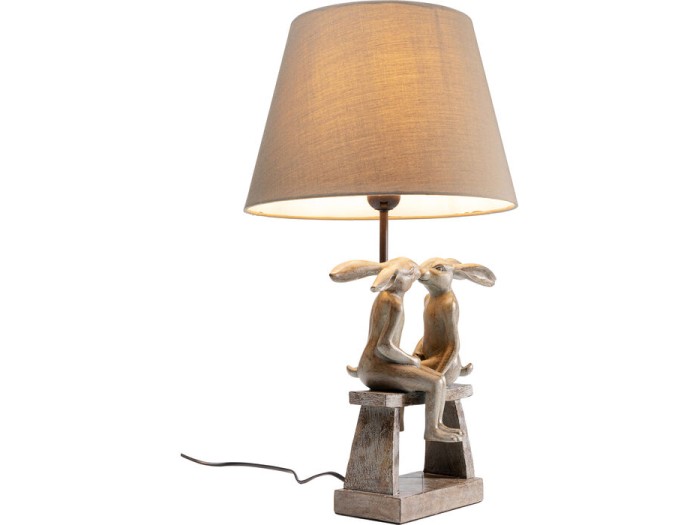 Κάτι για να ερωτευτείτε! Τα κουνελάκια που φιλιούνται κάτω από το σκίαστρο κάνουν αυτό το επιτραπέζιο φωτιστικό να τραβάει τα βλέμματα. Με αυτό το φωτιστικό θα φέρετε στο σπίτι σας όχι μόνο υπέροχη ατμόσφαιρα φωτισμού αλλά και ένα πρωτότυπο αξεσουάρ. Ένα άλλο οπτικό highlight είναι το φως της λάμπας, το οποίο λούζει το σκίαστρο σε ένα ζεστό χρυσό χρώμα και φωτίζει το ρομαντικό ζευγάρι. Με ύψος 53 cm, το καφέ επιτραπέζιο φωτιστικό δείχνει ωραίο σε ένα μπουφέ ή σε ένα ράφι στο σαλόνι. Το φωτιστικό θα προσελκύσει σίγουρα την προσοχή όλων. Είναι επίσης ιδανικό ως φωτιστικό γραφείου ή φωτιστικό δίπλα στο κρεβάτι για ένα χαλαρωτικό διάβασμα πριν κοιμηθείτε. Ο λαμπτήρας δεν περιλαμβάνεται στην προμήθεια. 230 V, 50/60 Hz, τοποθέτηση λαμπτήρα E27, αριθμός φωτιστικών 1, μέγ. 40 Watt, χωρίς φωτιστικό