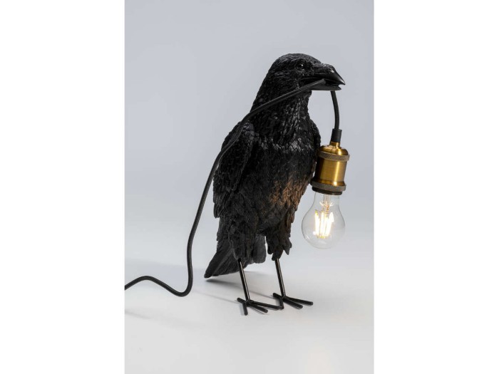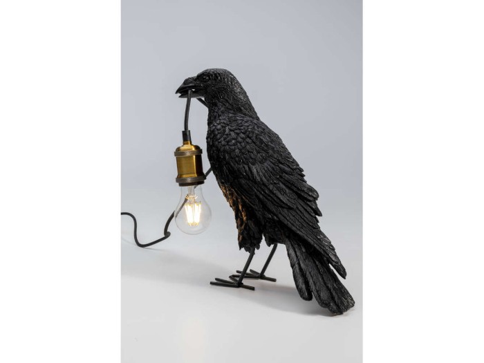 Αυτό το μαύρο επιτραπέζιο φωτιστικό έχει πραγματικά φτερά! Ένα κοράκι χρησιμοποιείται ως φορέας καλωδίων για το σχεδιασμό φωτισμού