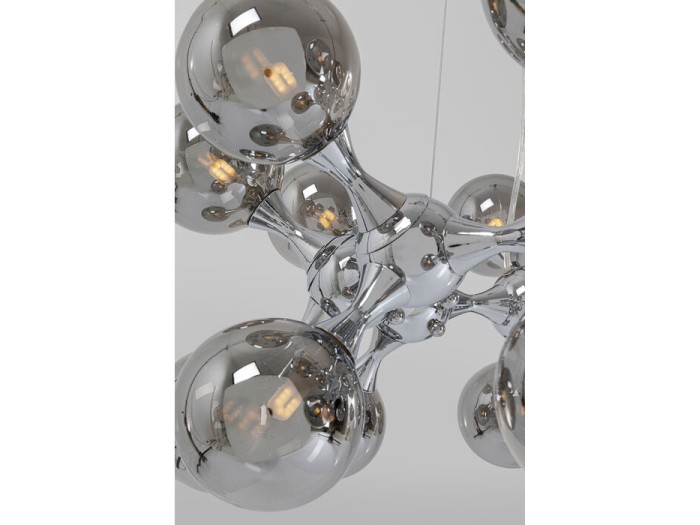 Με τις 18 γυάλινες αποχρώσεις του, αυτό το κρεμαστό φωτιστικό μοιάζει με έναν πρωτοποριακό πολυέλαιο. Το χρωματισμένο γυαλί αντανακλά τις πηγές φωτός στο εσωτερικό και το περιβάλλον. Ως αποτέλεσμα, το ρυθμιζόμενο σε ύψος κρεμαστό φωτιστικό ξεδιπλώνει ένα συναρπαστικό φωτιστικό αποτέλεσμα και σχηματίζει παιχνιδιάρικα ένα φωτεινό γλυπτό πάνω από το τραπέζι της τραπεζαρίας, στο υπνοδωμάτιο ή στο κέντρο του καθιστικού. 230 V, 50/60 Hz, τοποθέτηση λαμπτήρα G9, αριθμός φωτιστικών 18, μέγ. 28 Watt, χωρίς φωτιστικόΚρεμαστό φωτιστικό σε ασημί χρώμα με γυάλινα καλύμματα, 130 x 74 x 74 cm (Υ/Β/Δ)