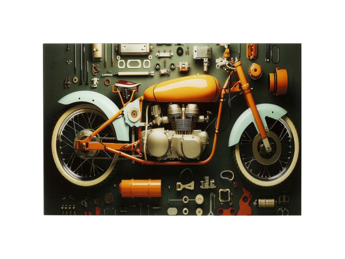Ο γυάλινος πίνακας Garage Motorbike, προσφέρει δυναμική αισθητική. Με διαστάσεις 60x0.4x80 εκατοστά, είναι ιδανικός για να διακοσμήσετε τον χώρο σας με ένα εντυπωσιακό και μοναδικό έργο τέχνης.