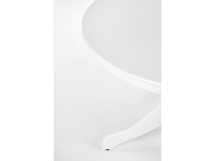 διαστάσεις: fi106/75 cm, υλικό: πάνω - λακαρισμένο MDF, πόδια - μασίφ ξύλο καουτσούκ, χρώμα: λευκό