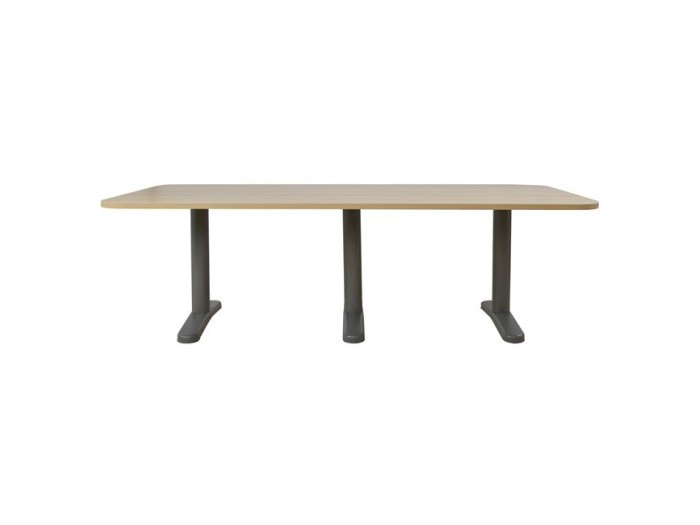 Επαγγελματικό γραφείο συνεδριάσεων, κατασκευασμένο από ανθεκτική μελαμίνη σε απόχρωση οξιάς και μεταλλικά πόδια σε γκρι απόχρωση.