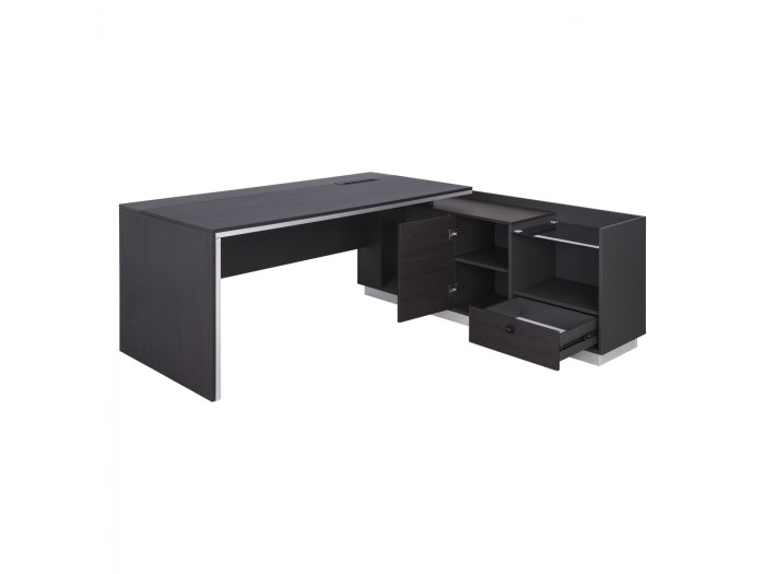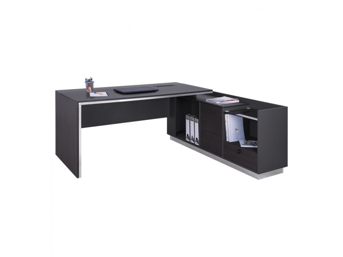 Επαγγελματικό γραφείο με δεξιά γωνία, κατασκευασμένο από μελαμίνη υψηλής ποιότητας, σε γκρι και βέγγε απόχρωση.