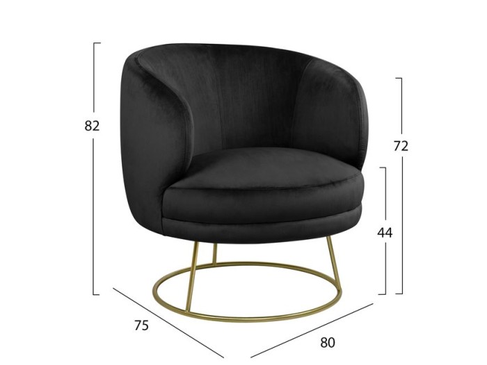 Η πολυθρόνα ΗΜ8403.04 είναι μια μοντέρνα και στιλάτη πολυθρόνα που θα αφήσει το στίγμα της σε όποιο σαλόνι κι αν τοποθετηθεί. Το στρογγυλό της σχήμα με την στρογγυλή μεταλλική της βάση, σε συνδυασμό με την χαμηλή πλάτη και τα ισοϋψή μπράτσα, «αγκαλιάζουν» το σώμα και προσφέρουν άνεση και στυλ. Το επιβλητικό ΜΑΥΡΟ χρώμα με το χρυσό της βάσης μπορεί να συνδυαστεί με πληθώρα άλλων χρωμάτων στην διακόσμηση του σαλονιού.
