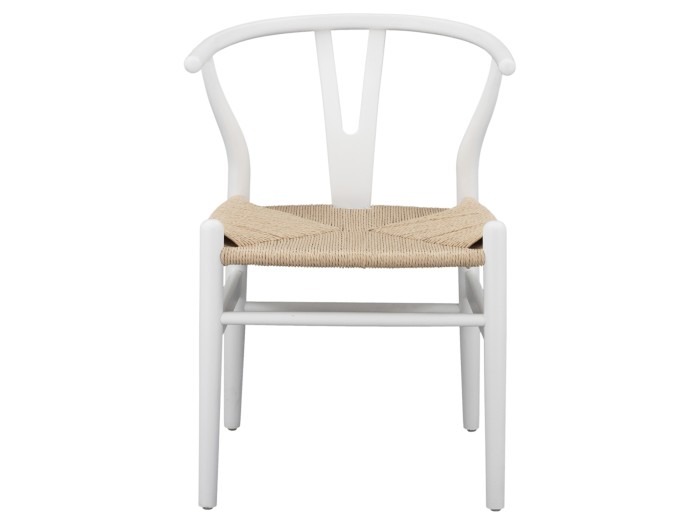 Η καρέκλα BRAVE είναι κατασκευασμένη από υψηλής αντοχής ξύλο οξιάς σε λευκή απόχρωση με κάθισμα χειροποίητης πλέξης σχοινιού σε μπεζ χρώμα.