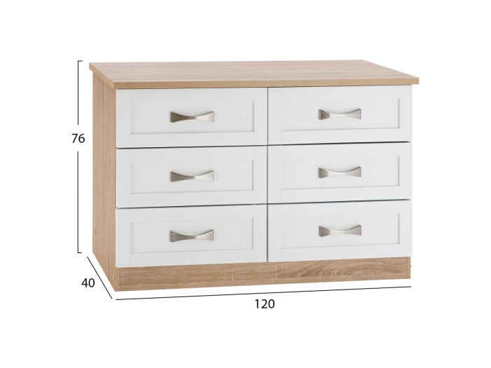 Διαθέτει έξι ευρύχωρα συρτάρια για να τοποθετήσετε τα προσωπικά σας αντικείμενα. Τα χερούλια είναι μεταλλικά σε ασημί απόχρωση.