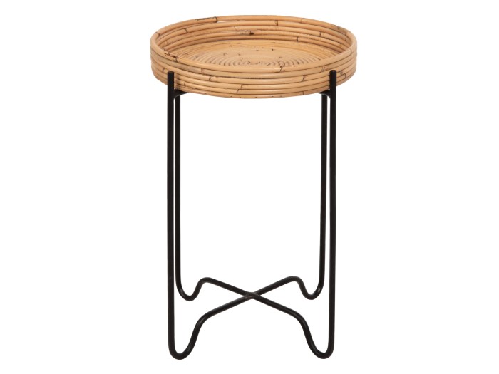 Το τραπεζάκι FLY θα σας ενθουσιάσει με το στυλ και την πρακτικότητά του. Πρόκειται για ένα στρογγυλό τραπεζάκι με ιδιαίτερο χαρακτηριστικό ότι η επιφάνεια αποτελείται από φυσικό RATTAN και στηρίζεται σε μια βάση με χιαστί διάταξη. Η βάση είναι μεταλλική σε ΜΑΥΡΟ χρώμα. Ιδανική επιλογή για πληθώρα χρήσεων με απαράμιλλο στυλ!