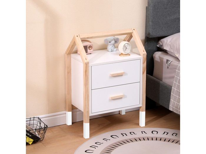 Σας παρουσιάζουμε το καινούργιο παιδικό κομοδίνο PEPE σε ΛΕΥΚΟ χρώμα. Ταιριάζει με ανάλογης αισθητικής κρεβάτια και διαθέτει δύο συρταράκια. Στηρίζεται σε ξύλινο σκελετό σε ΦΥΣΙΚΟ χρώμα ξύλου, σε σχήμα σπιτάκι. Είναι βαμμένο με αβλαβές βερνίκι με βάση το νερό και μη τοξικό, ιδανικό για παιδιά.