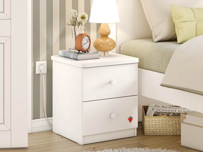 Το κομοδίνο της σειράς VARIA διαθέτει δύο συρτάρια για χώρο αποθήκευσης. Σχεδιαστικά ακολουθεί την ίδια μοντέρνα αισθητική με έμφαση στις λεπτομέρειες και το design