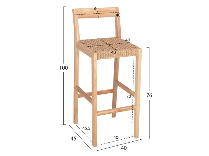 Ο σκελετός του σκαμπό είναι από εξαιρετικής ποιότητας μασίφ ξύλο ΤΕΑΚ. Το ΤΕΑΚ είναι ο πιο δημοφιλής τύπος σκληρού ξύλου. Είναι εξαιρετικά βαρύ, υψηλής αντοχής, ανθεκτικό στις καιρικές συνθήκες, ανθεκτικό στο σκέβρωμα και δεν αποσυντίθεται. Χρησιμοποιείται για πληθώρα κατασκευών εσωτερικού και εξωτερικού χώρου(με ειδική επεξεργασία).