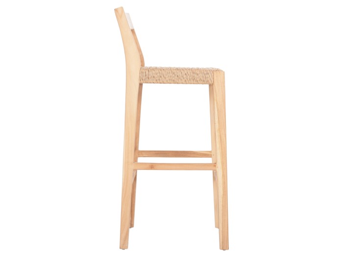 Το σκαμπό μπαρ PLERED διαθέτει σκελετό χωρίς μπράτσα από ποιοτικό ξύλο σε ΦΥΣΙΚΗ bleached απόχρωση, και μονόξυλη πλάτη. Το κάθισμα αποτελείται από τετραγωνισμένα πλεγμένο VIRO σχοινί σε ΜΠΕΖ απόχρωση. Οι σχεδιαστικές γραμμές είναι κομψές και με γνώμονα την άνεση του χρήστη, με χαρακτηριστικό παράδειγμα την ύπαρξη των συνδέσεων των ποδιών του σκαμπό, που χρησιμεύουν και ως υποπόδια.