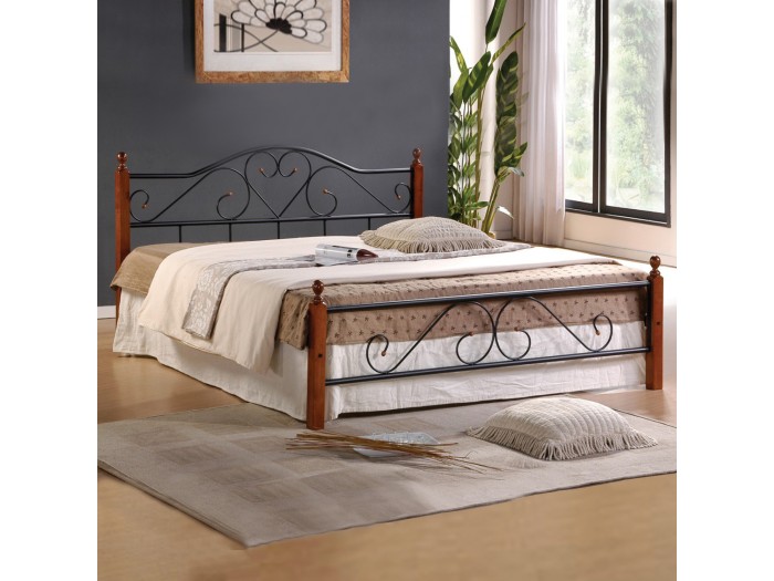 Τα πόδια-κολώνες του κρεβατιού είναι από μασίφ ξύλο , ενώ όλο το υπόλοιπο κρεβάτι είναι μεταλλικό.