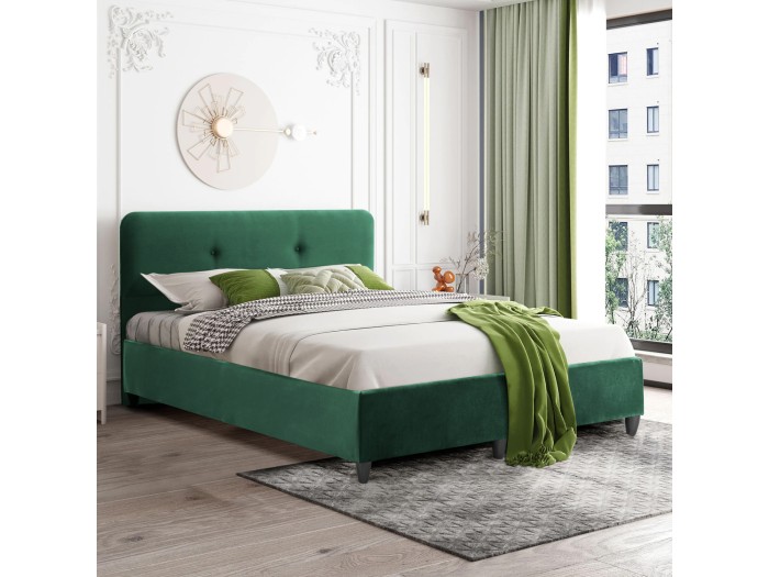 Το κεφαλάρι είναι ψηλό και έχει διακόσμηση με 2 μόνο τρουκς (κουμπάκια), ενώ και όλη η επένδυση του κρεβατιού είναι από υπέροχο βελούδινο ύφασμα. Το ΚΥΠΑΡΙΣΣΙ χρώμα σε όλο το κρεβάτι είναι ουδέτερο και μπορεί να συνδυαστεί με πληθώρα διακοσμητικών μοτίβων. Όμως, το κύριο χαρακτηριστικό αυτού του κρεβατιού είναι ότι δεν ακολουθεί την κλασική κατασκευή με τις τάβλες του σομιέ για την στήριξη του στρώματος, αλλά αντίθετα αποτελείται από μια συνεχόμενη επιφάνεια (2 μοριοσανίδες) πάνω στην οποία τοποθετείται το στρώμα! Σε διαστάσεις στρώματος 150x200 εκ. θα χωρέσει κάθε σας όνειρο!