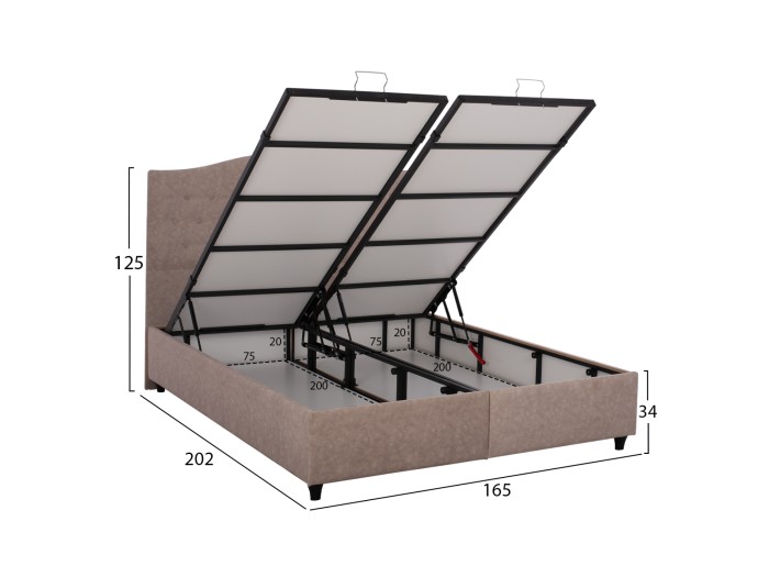 Όμως, το κύριο χαρακτηριστικό αυτού του κρεβατιού είναι ότι δεν ακολουθεί την κλασική κατασκευή με τις τάβλες του σομιέ για την στήριξη του στρώματος, αλλά αντίθετα αποτελείται από μια συνεχόμενη επιφάνεια (2 μοριοσανίδες) επενδυμένη με αντιολισθητική φόδρα, πάνω στην οποία τοποθετείται το στρώμα. Επιπλέον, η κάθε επιφάνεια από μοριοσανίδα ανασηκώνεται με μεταλλικό μηχανισμό ασφαλείας με 4 αμορτισέρ και μεταλλικές λαβές προσφέροντας έναν μεγάλο αποθηκευτικό χώρο. Σε διαστάσεις διπλού στρώματος 160x200 εκ. θα μπορέσει να φιλοξενήσει «βασιλικά» 2 άτομα.