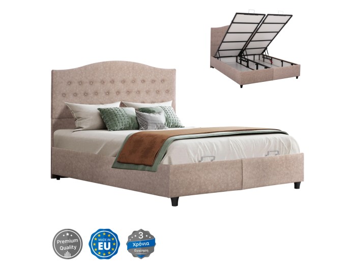 Η επένδυση έχει γίνει εξολοκλήρου από εξαιρετικής ποιότητας ύφασμα τύπου NUBUCK, χαρίζοντας ελκυστική όψη και μια εκλεπτυσμένη γοητεία στην διακόσμηση του υπνοδωματίου.