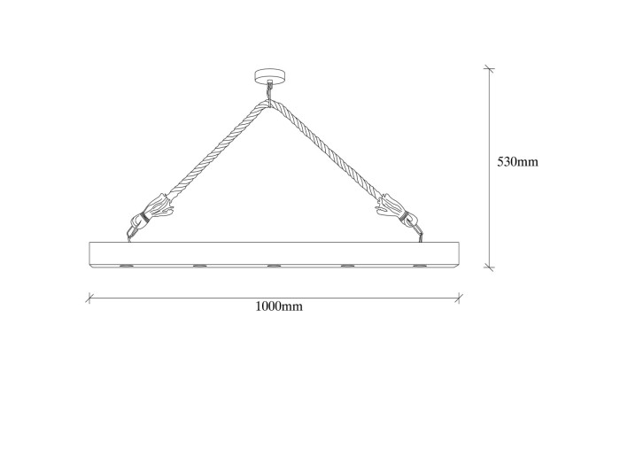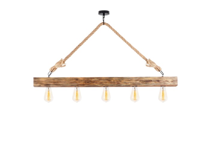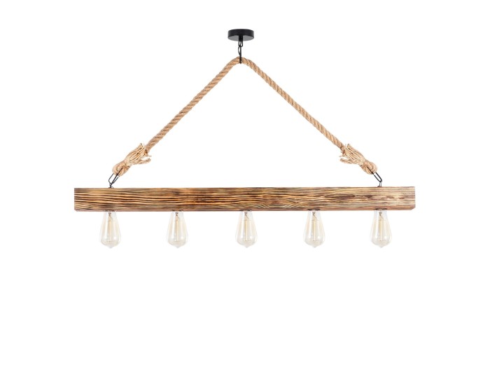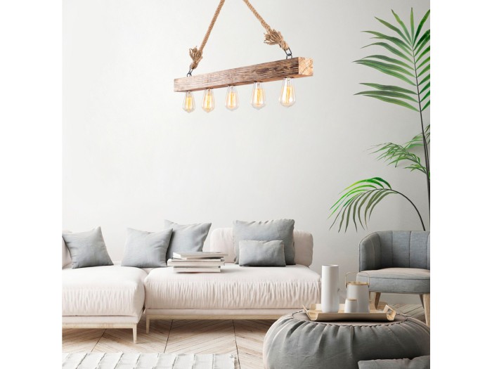 Φωτιστικό οροφής industrial αλλά και rustic στιλ. Κατασκευασμένο από ξύλινη ράγα φυσικού χρώματος και σχοινί σε φυσική απόχρωση.