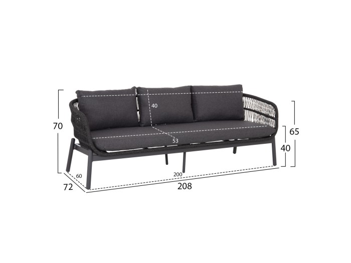 •Καναπές: 209 x 83 x 74Υ εκ.---Ύψος καθίσματος: 41 εκ.