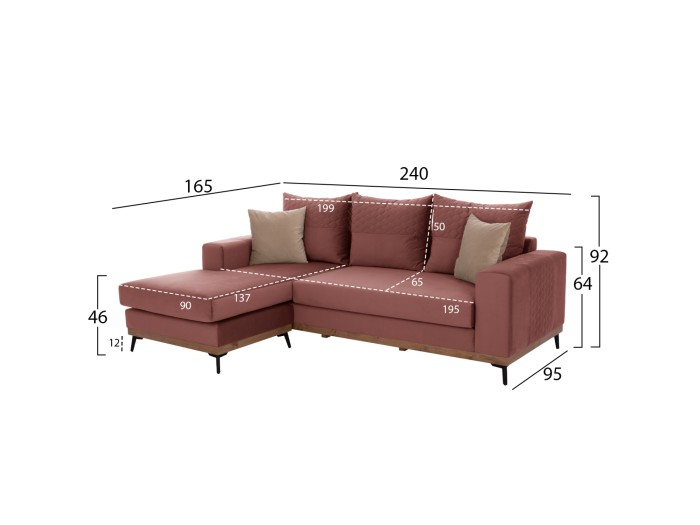 Γενικές Διαστάσεις: 240x165x92Y εκ. (μαζί με τα μαξιλάρια πλάτης)