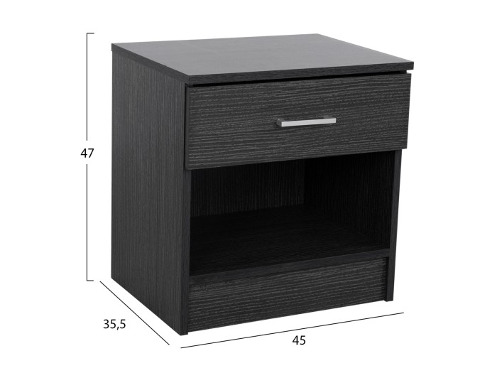 Κομοδίνο μελαμίνης με ένα συρτάρι σε zebrano απόχρωση.