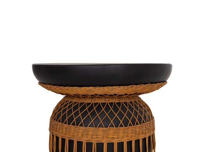 Το χειροποίητο στρογγυλό τραπέζι τραπεζαρίας PRILEP αποτελεί σημείο αναφοράς σε κάθε χώρο με το όμορφο design του αλλά και την πολύ ιδιαίτερη διακόσμησή του με φυσικό rattan. Είναι κατασκευασμένο εξολοκλήρου από Fiber Cement σε ΜΑΥΡΟ χρώμα και ενδείκνυται τόσο για το σπίτι, όσο και για επαγγελματικούς χώρους, όπως ξενοδοχεία, AirBnB, κτλ., με αντίστοιχη αισθητική.