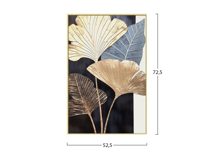 Ανάμεσα σε όλα τα διακοσμητικά στοιχεία, τα έργα τέχνης και ειδικά οι πίνακες ζωγραφικής παίζουν εξέχοντα ρόλο: όχι μόνο προσθέτουν χρώμα και αισθητική ομορφιά, αλλά δίνουν επίσης βάθος και νόημα στον χώρο μας. Ένας πίνακας μεταμορφώνει τον τρόπο που αντιλαμβανόμαστε έναν χώρο. Διακοσμήστε, λοιπόν, τον χώρο σας με έναν από τους καινούργιους πίνακες που προστέθηκαν στην γκάμα μας! Αυτός ο πίνακας απεικονίζει πλατιά φύλλα και είναι ζωγραφισμένος κατά 40% με το χέρι σε καμβά με εκτύπωση. Η κορνίζα είναι μπεζ από πολυστυρένιο.