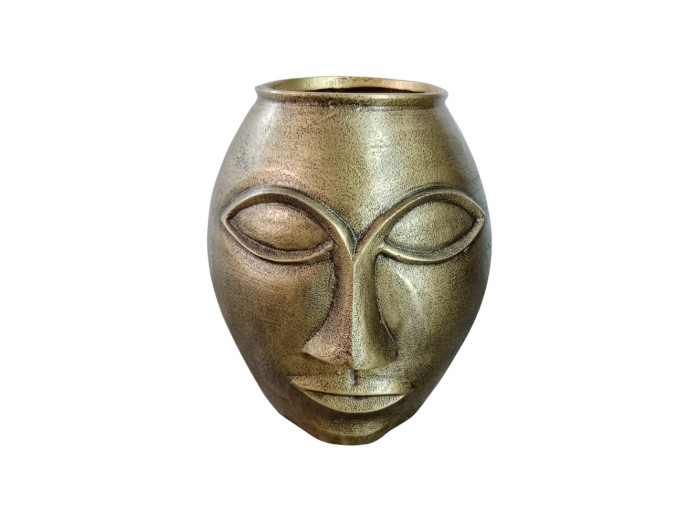 Το βάζο HARGA από αλουμίνιο σε χρυσό αντικέ ξεχωρίζει για το ιδιαίτερο artistic πρόσωπο που δεσπόζει στο μπροστινό μέρος. Η έντονη γλυπτική επιρροή το μετατρέπει από ένα απλό διακοσμητικό σε ένα εντυπωσιακό art piece. Η μεταλλική του δομή εξασφαλίζει ανθεκτικότητα, ενώ η αντικέ χρυσή πατίνα αποπνέει vintage πολυτέλεια. Ιδανικό για elegant καθιστικά, entryways, ξενοδοχειακές σουίτες, gallery-inspired χώρους και boutique καταστήματα, όπου λειτουργεί ως άμεσο σημείο αναφοράς.
