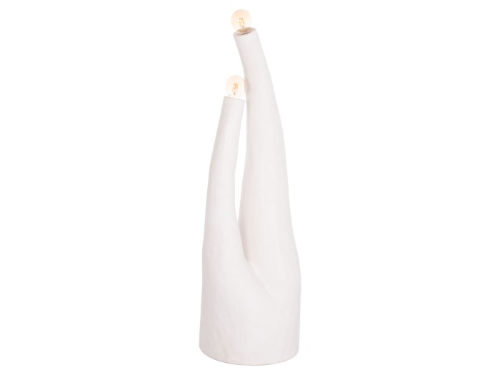 Το χειροποίητο και επιβλητικό διακοσμητικό φωτιστικό δαπέδου TUSKEN έχει ακανόνιστο αλλά μοντέρνο design με δύο λάμπες σε διαφορετικά ύψη. Διαθέτει μεγάλο καλώδιο τροφοδοσίας με διακόπτη on/off. Είναι κατασκευασμένο εξολοκλήρου από Fiber Cement σε ΛΕΥΚΟ χρώμα και αποτελεί ιδανικό συμπλήρωμα τόσο για το σπίτι, όσο και για επαγγελματικούς χώρους, όπως ξενοδοχεία, AirBnB, κτλ.