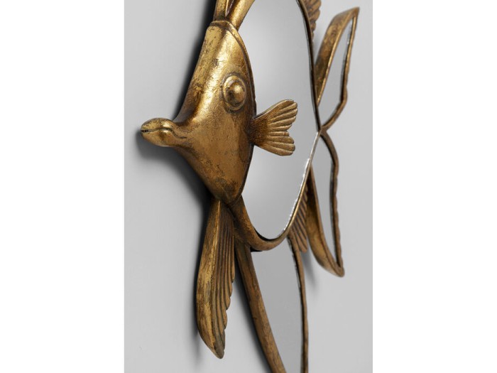 Ένα εντυπωσιακό, μεγάλο διακοσμητικό τοίχου με μια κομψή, χρυσή εμφάνιση σε σχήμα ψαριού που πάνω του έχει κομμάτια από γυάλινο καθρέφτη. Αυτό το εκκεντρικό, διακοσμητικό αντικείμενο ό