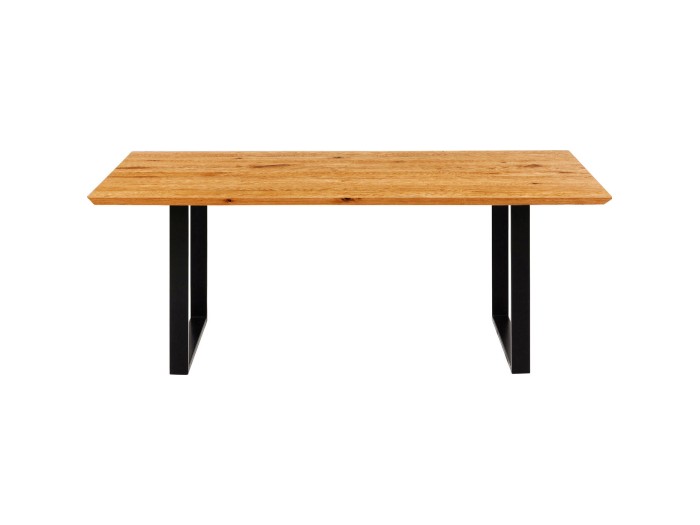 Τραπεζαρία κατασκευασμένη από ορειχάλκινο ατσάλινο σκελετό σε μαύρο χρώμα και επιφάνεια από μασίφ ξύλο βελανιδιάς πάχους 3,5 εκ.