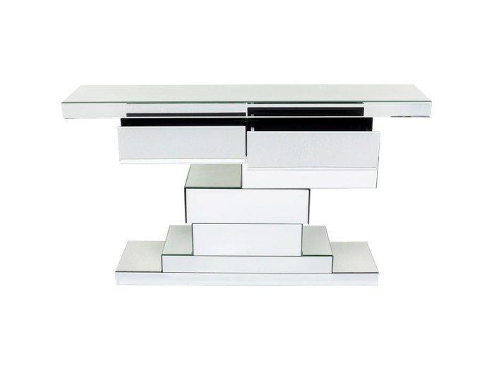 Γιατί αυτοί οι επτά καθρέφτινοι κύβοι σχηματίζουν μια κονσόλα – ένα εντυπωσιακό κομμάτι που συνδυάζει πολυτέλεια και λειτουργικότητα.
