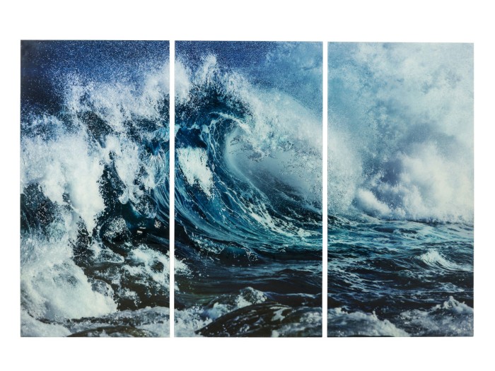 Εικόνα: Δηλαδή δεν πιστεύετε στα θαύματα; Αυτή η σειρά τριών τμημάτων αποδεικνύει την απερίγραπτη ποικιλομορφία και τη δύναμη της θάλασσας. Η εικόνα δείχνει ένα κύμα που σπάει και η θέα είναι ταυτόχρονα δυναμική, υπνωτική και ηρεμιστική. Εναρμονίζεται τέλεια με τα μοντέρνα έπιπλα. Η εκτύπωση είναι απαθανατισμένη σε γυαλί ασφαλείας.