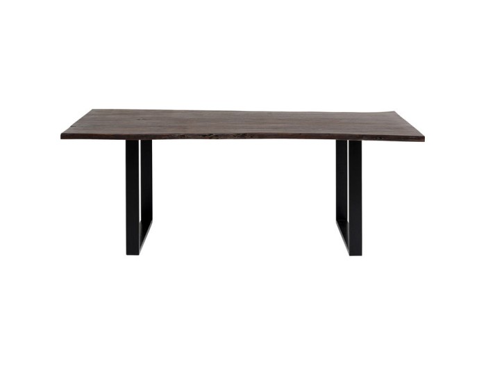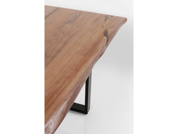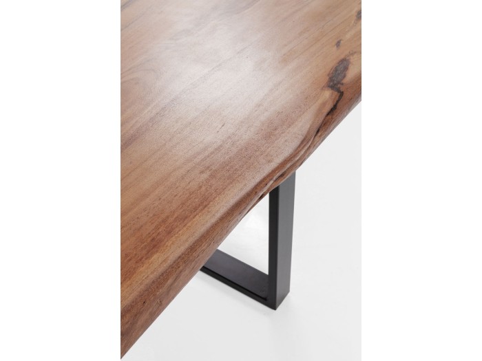 Ένα τραπέζι με φυσική ομορφιά για την τραπεζαρία και εντυπωσιακή μορφή με χειροποίητα κατασκευασμένη επιφάνεια πάχους 3.5 εκ, από μασίφ ξύλο ακακίας και μαύρα μεταλλικά ατσάλινα πόδια.