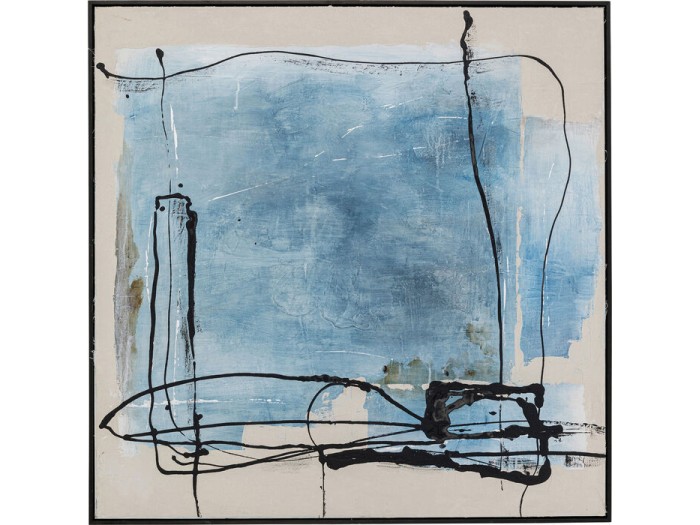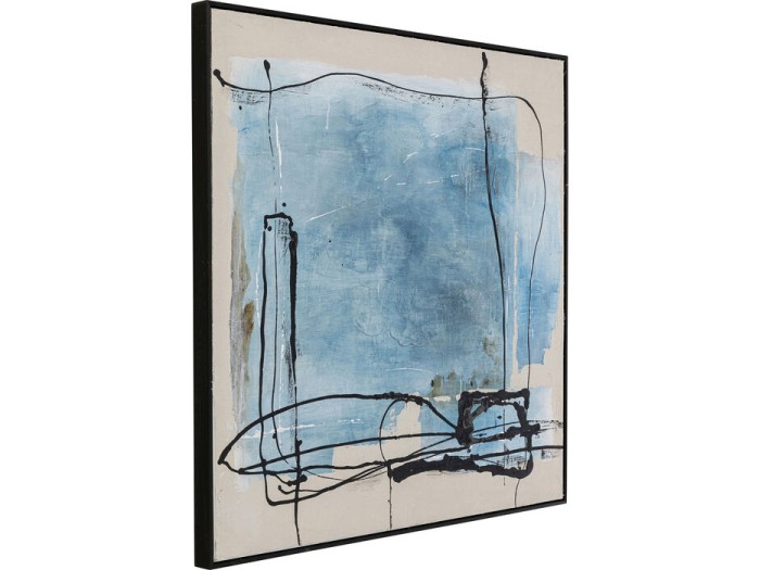 Μεγάλος πίνακας ζωγραφικής σε καμβά διαστάσεων 100x100cm σε αποχρώσεις του μπλε με πινελιές του μαύρου