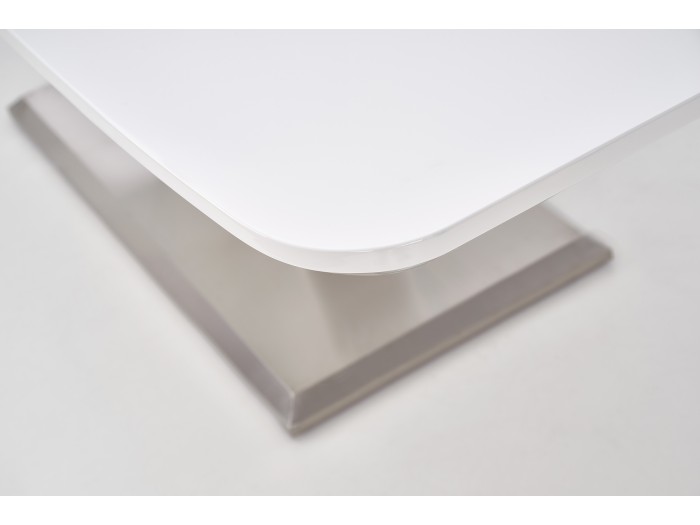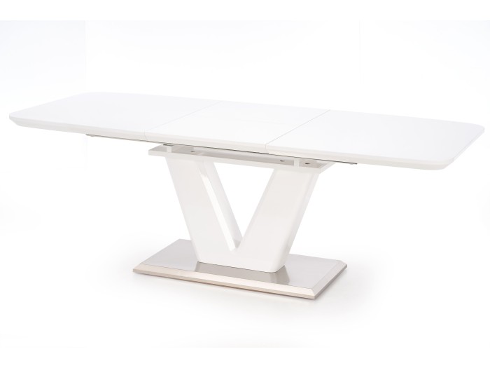 extension table, dimensions: 160-220/90/77 cm, material: lacquered MDF / stainless steel, color: white