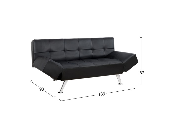 Καναπές κρεβάτι, επενδεδυμένος με τεχνόδερμα σε μαύρη απόχρωση 189x93x82 εκ.