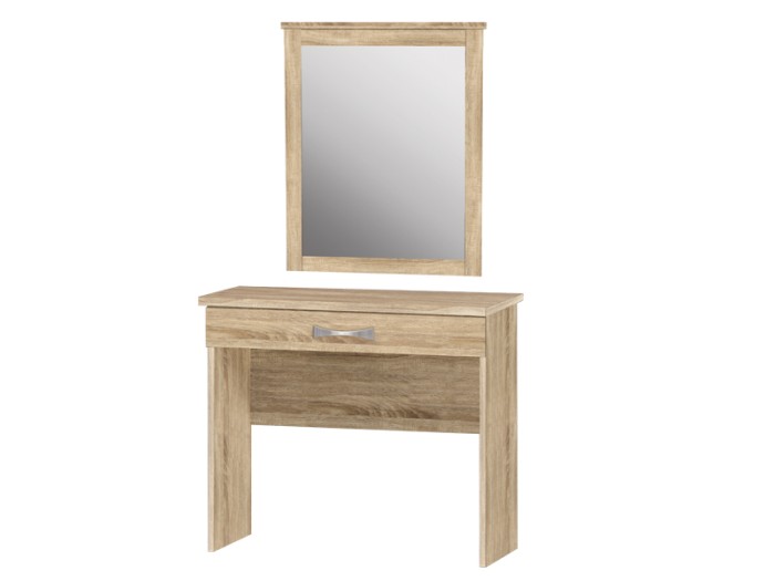 Τουαλέτα με καθρέπτη κατασκευασμένη από μελαμίνη σε Sonama χρώμα. Η τουαλέτα διαθέτει ένα συρτάρι με μεταλλικό πόμολο.