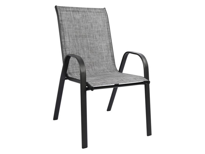 'Εξι πολυθρόνες εξωτερικού χώρου από μεταλλικό σκελετό σε γκρι χρώμα με textilene 2x1 μεγάλης αντοχής σε ήλιο και βροχή.
