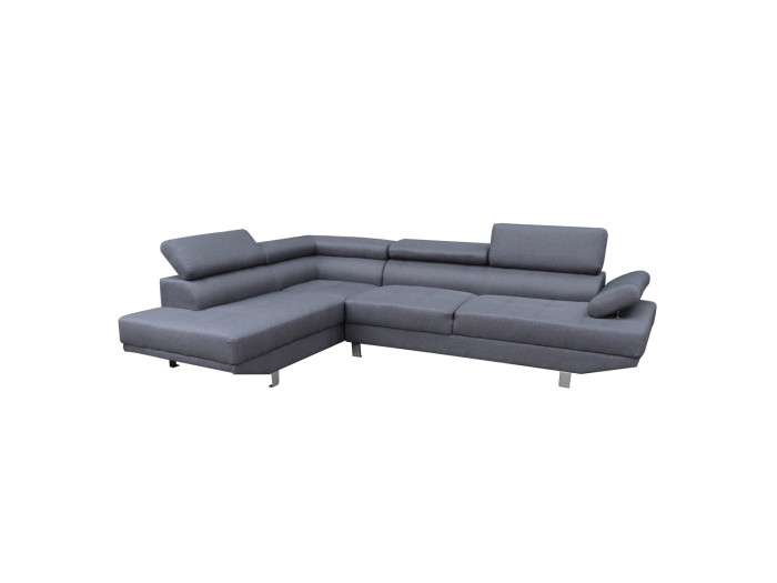 Καναπές αριστερή γωνία, επενδεδυμένος με ύφασμα σε γκρι απόχρωση και μεταλλικά ψηλά πόδια.